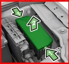 Appuyez simultanément sur les boutons de verrouillage du couvercle de la boîte à fusibles et retirez le couvercle.
